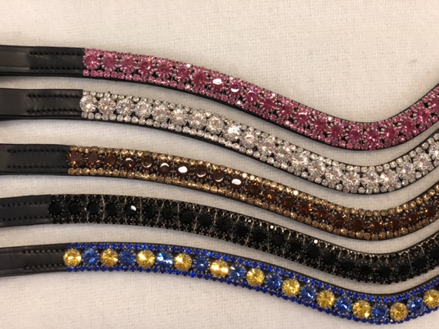 U-format pannband med speciellt slipade fasetter för större ljusreflektion. Svart läder, önskas det brunt läder? Skriv i meddelande så löser vi det.