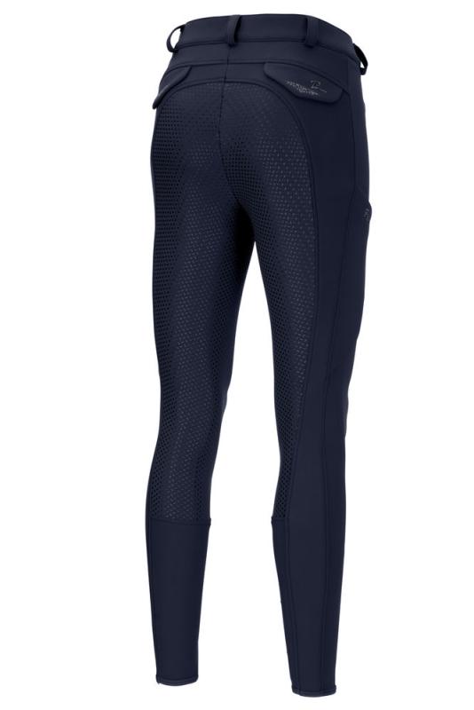Stilrena softshellbyxor i marin från Pikeur. Blingdetaljer på fickor fram samt fakeficka bak. Helskodd med grip.