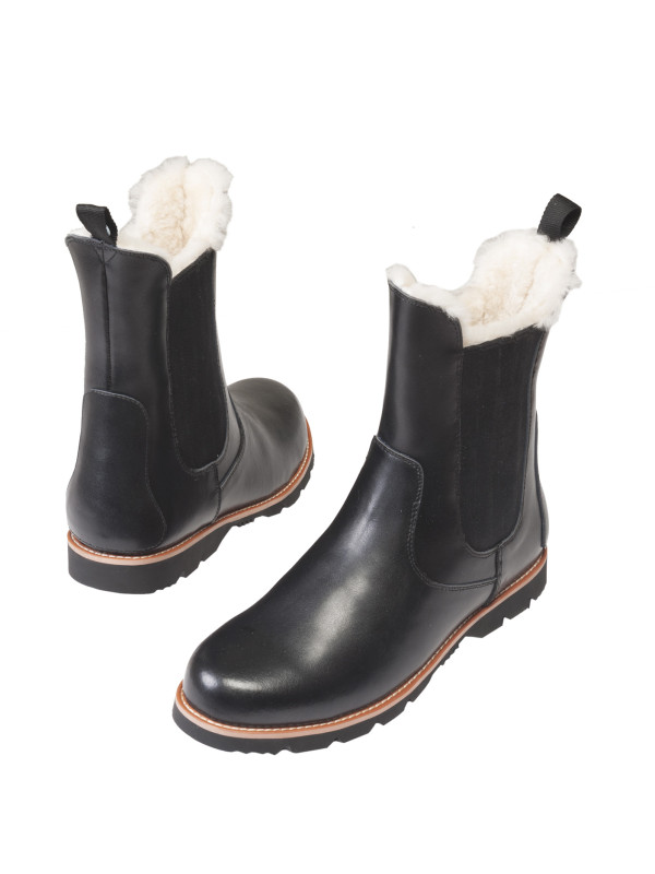 Läder boots fodrad med fårskinn, svart, lite högre